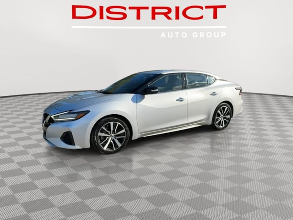 CARFAX One-Owner. Clean CARFAX. ABS brakes, Air Conditioning, Alloy wheels, Auto High-beam Headlights, Auto-dimming Rear-View mirror, Automatic temperature control, Blind Spot Warning, Dual front impact airbags, Dual front side impact airbags, Electronic Stability Control, Emergency communication system: NissanConnect Services, Four wheel independent suspension, Front Center Armrest, Front dual zone A/C, Fully automatic headlights, Heated front seats, Leather-Appointed Seat Trim, Navigation system: Nissan Door to Door Connected Navigation, NissanConnect featuring Apple CarPlay and Android Auto, Occupant sensing airbag, Overhead airbag, Overhead console, Panic alarm, Passenger vanity mirror, Power driver seat, Power passenger seat, Power steering, Power windows, Radio data system, Rear seat center armrest, Rear side impact airbag, Rear window defroster, Remote keyless entry, Security system, Speed-sensing steering, Speed-Sensitive Wipers, Split folding rear seat, Steering wheel mounted audio controls, Tachometer, Tilt steering wheel, Traction control, Variably intermittent wipers, Wheels: 18" Machined Aluminum Alloy. 2023 Nissan Maxima SV Brilliant Silver Metallic FWD CVT with Xtronic 3.5L V6 DOHC 24V 20/30 City/Highway MPG