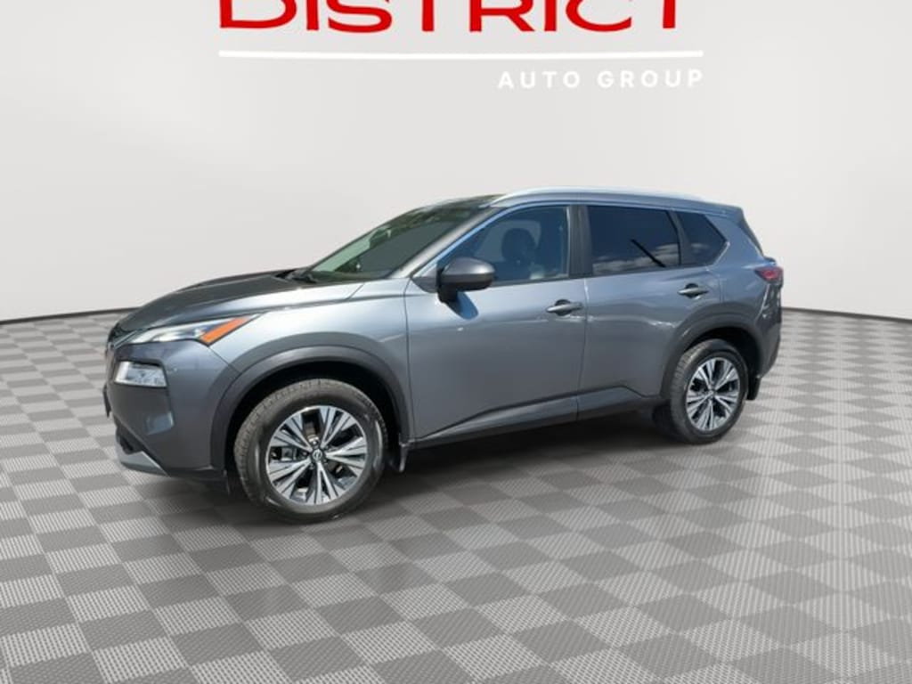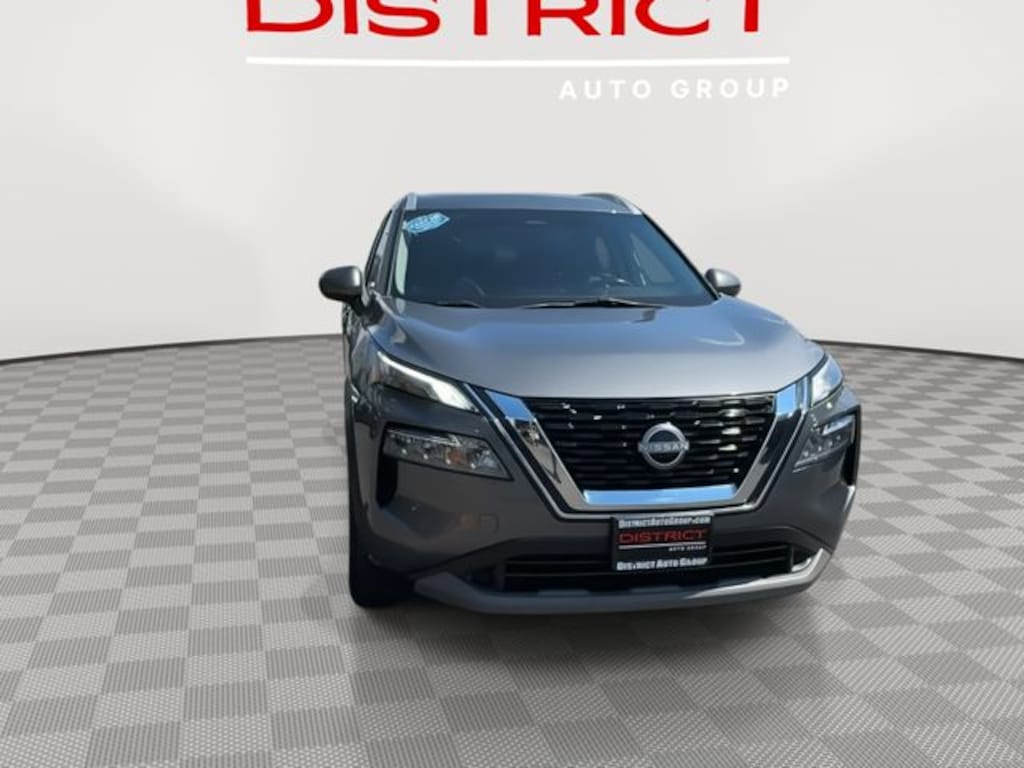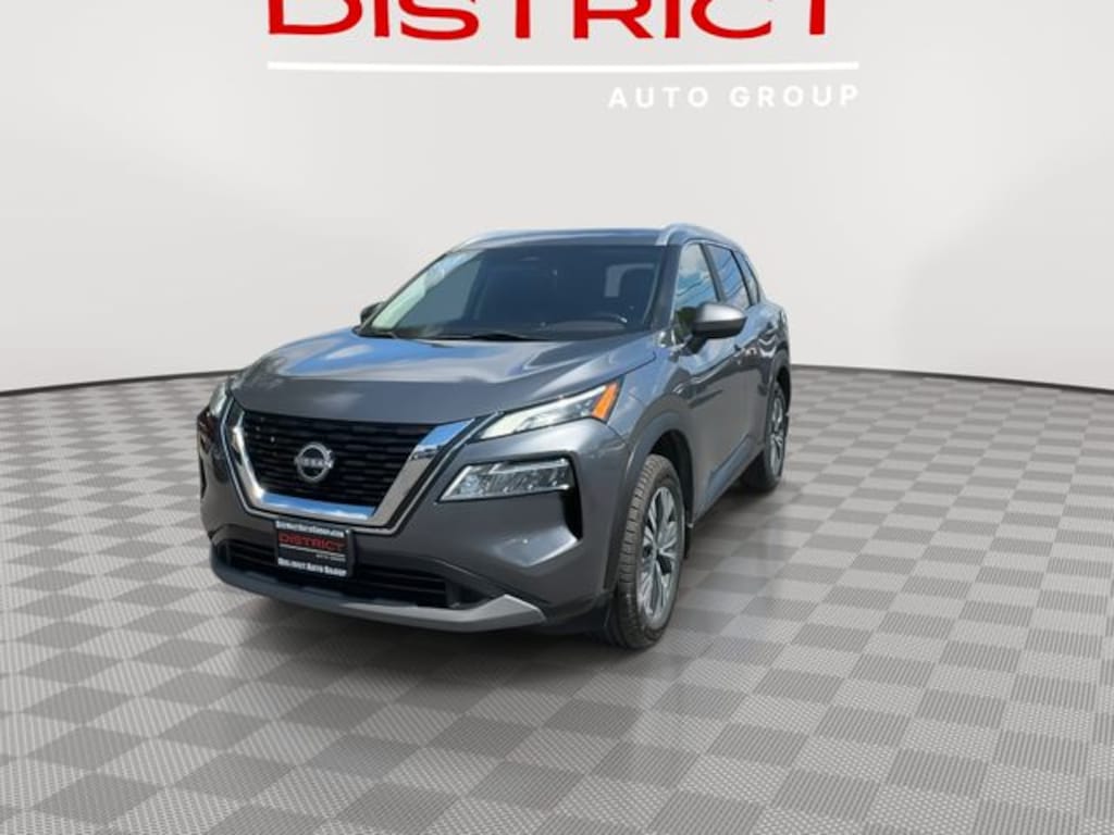 CARFAX One-Owner. 18" Aluminum Alloy Wheels, 4-Wheel Disc Brakes, 5.604 Axle Ratio, ABS brakes, Air Conditioning, Alloy wheels, Auto High-beam Headlights, Automatic temperature control, Black Splash Guards (Set of 4), Brake assist, Bumpers: body-color, Chrome Rear Bumper Protector, Cloth Seat Trim, Delay-off headlights, Driver door bin, Driver vanity mirror, Dual front impact airbags, Dual front side impact airbags, Electronic Stability Control, Emergency communication system: NissanConnect Services, First Aid Kit, Floor Mats w/1-Piece Cargo Area Protector, Four wheel independent suspension, Front anti-roll bar, Front Bucket Seats, Front Center Armrest, Front dual zone A/C, Front reading lights, Fully automatic headlights, Heated door mirrors, Heated Driver & Front Passenger Seats, Heated Leather Wrapped Steering Wheel, Illuminated entry, Knee airbag, Leatherette Door Trim Inserts w/Stitch, Low tire pressure warning, NissanConnect featuring Apple CarPlay and Android Auto, Occupant sensing airbag, Outside temperature display, Overhead airbag, Overhead console, Panoramic Moonroof, Passenger door bin, Passenger vanity mirror, Power door mirrors, Power driver seat, Power Liftgate, Power steering, Power windows, PRIMATEX Leatherette Seat Trim, Rear anti-roll bar, Rear Door Sunshades, Rear Parking Sensors, Rear Personal Lights, Rear side impact airbag, Rear window defroster, Rear window wiper, Remote keyless entry, Security Alarm, Silver Painted Roof Rails, Speed control, Speed-Sensitive Wipers, Steering wheel mounted audio controls, SV Premium B Package, Tachometer, Telescoping steering wheel, Tilt steering wheel, Traction control, Trip computer, Variably intermittent wipers. 2023 Nissan Rogue SV Gun Metallic FWD CVT with Xtronic 1.5L I3 Turbocharged DOHC 12V LEV3-ULEV50 201hp 30/37 City/Highway MPG