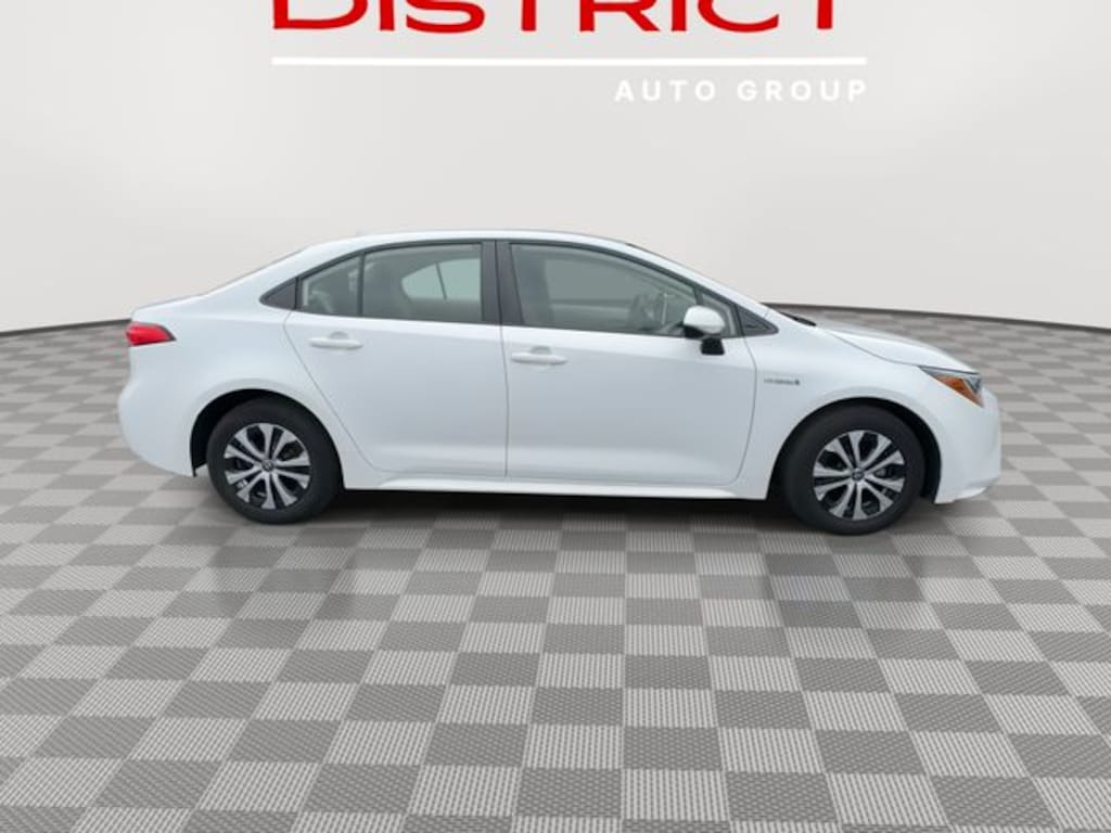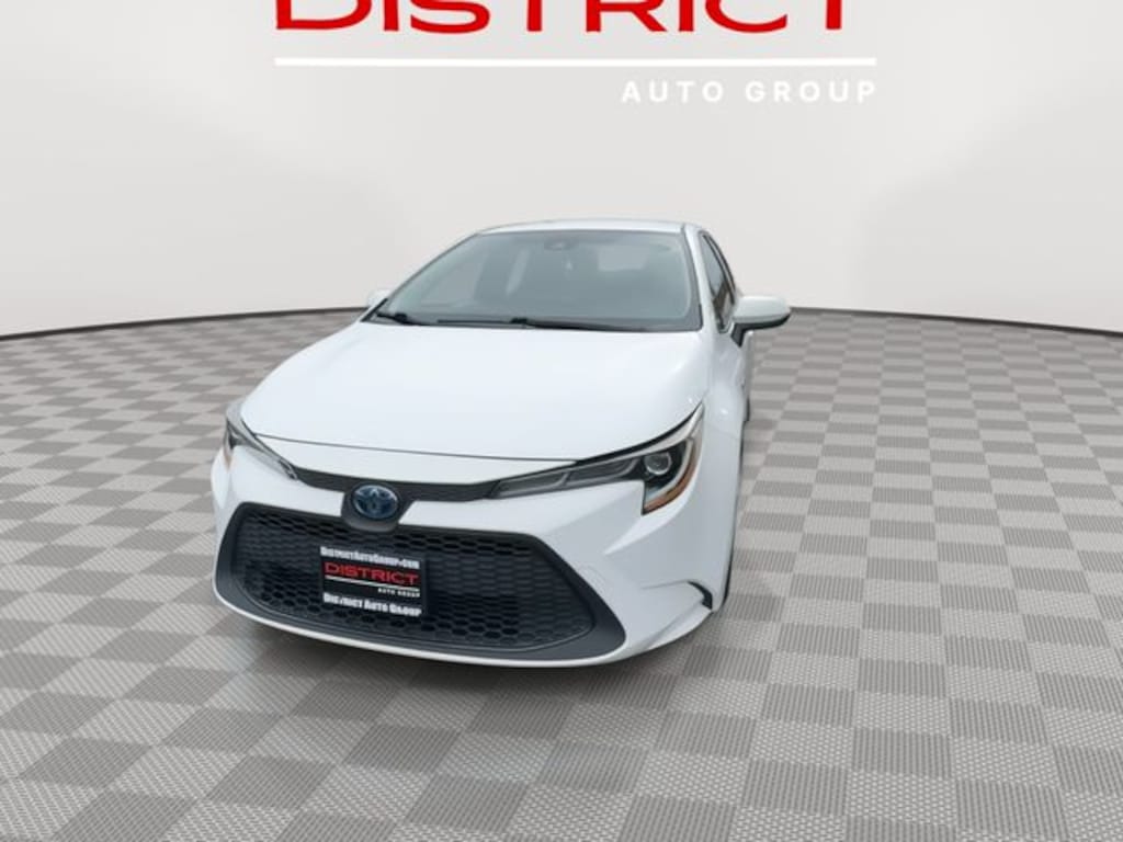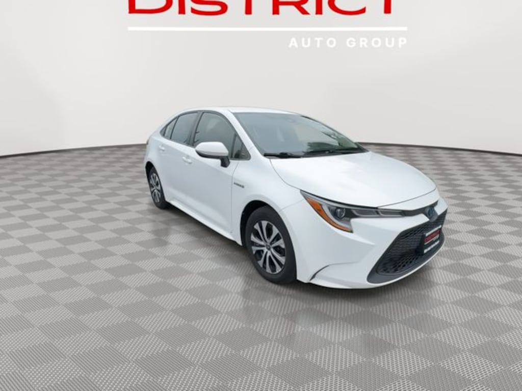 CARFAX One-Owner. Bluetooth, Apple Car Play / Android Auto, 1.8L DOHC 16V VVT, Alloy wheels, Apple CarPlay/Android Auto, Auto High-beam Headlights, Brake assist, Delay-off headlights, Dual front side impact airbags, Electronic Stability Control, Exterior Parking Camera Rear, Front Bucket Seats, Front Center Armrest, Front reading lights, Fully automatic headlights, Illuminated entry, Knee airbag, Lane departure: Lane Departure Alert (LDA) w/Steering Assist active, Low tire pressure warning, Occupant sensing airbag, Outside temperature display, Overhead airbag, Premium Fabric Seat Trim, Rear anti-roll bar, Rear seat center armrest, Rear side impact airbag, Split folding rear seat, Tachometer, Telescoping steering wheel, Trip computer. 2021 Toyota Corolla Hybrid LE White FWD CVT 1.8L DOHC 16V VVT 53/52 City/Highway MPG